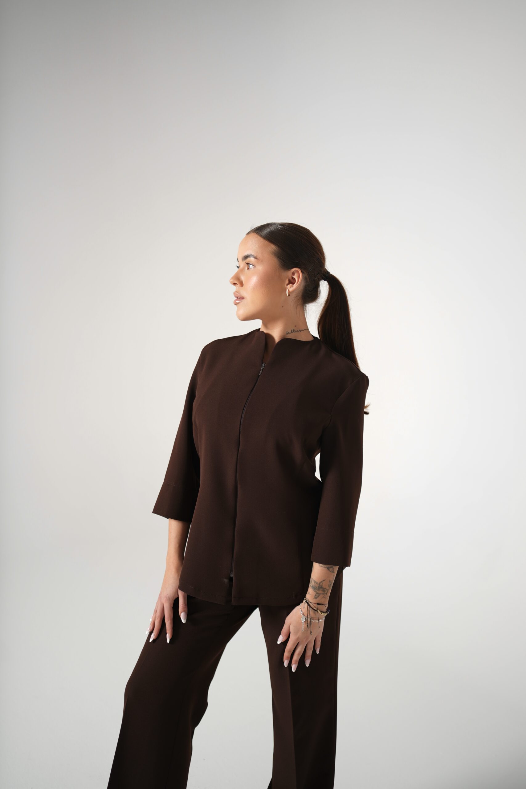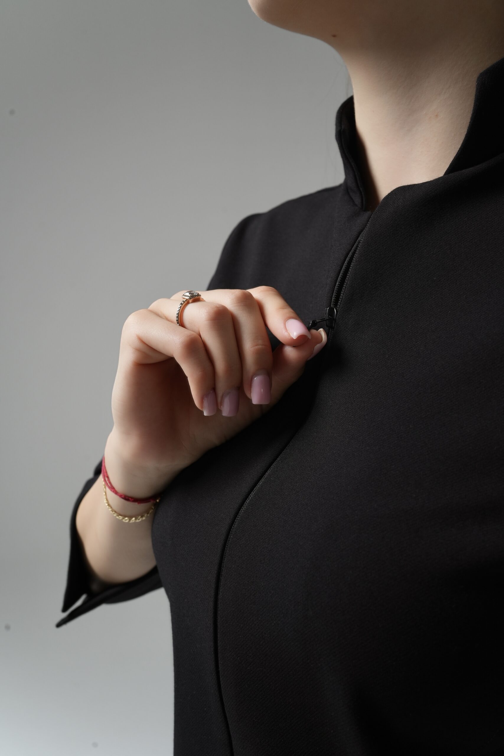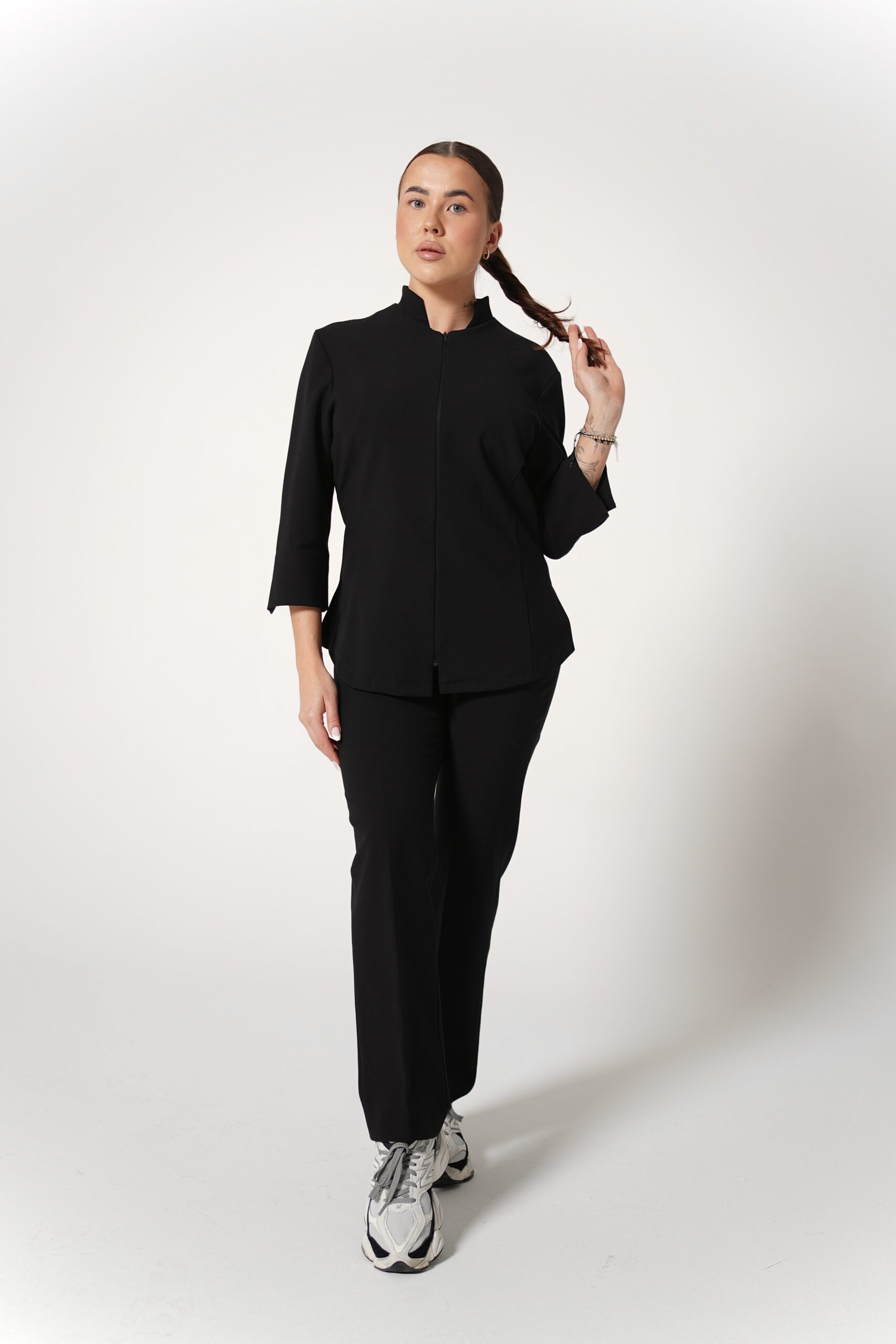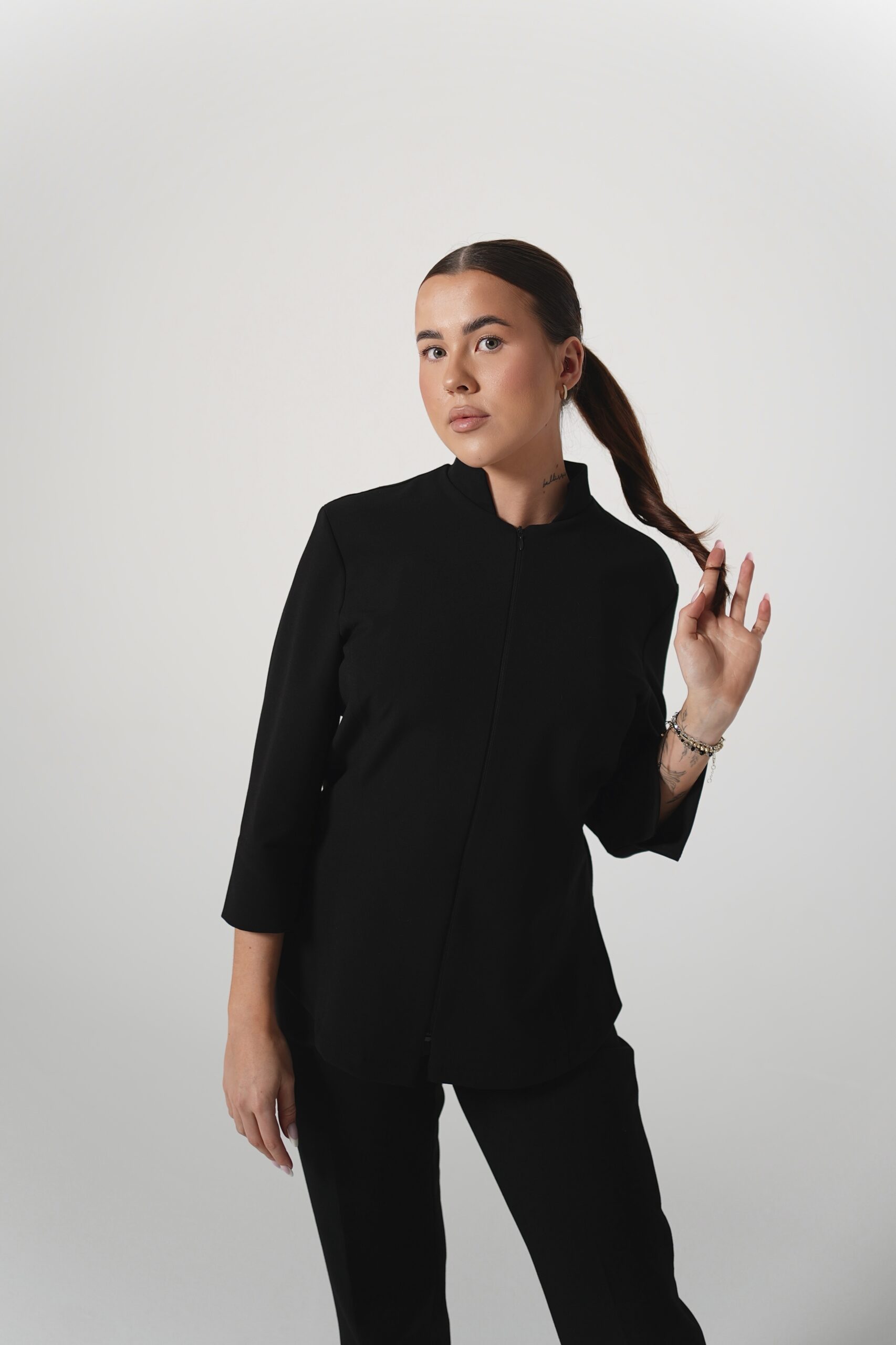 Elegancki mundurek ze stójką, który łączy klasykę z nowoczesnym stylem. Idealny wybór dla osób ceniących wygodę i schludny wygląd na co dzień.