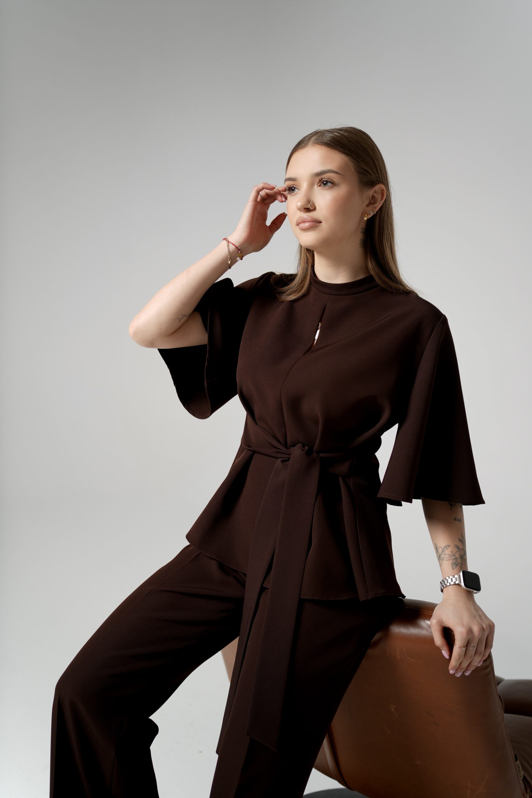 Mundurek z luźno uszytą górą charakteryzuje się swobodnym krojem, który zapewnia wygodę i nie krępuje ruchów. Taka forma nadaje stylizacji lekkości i nowoczesności, jednocześnie zachowując elegancki, schludny wygląd. To idealne rozwiązanie dla osób ceniących komfort i modny wygląd w codziennych sytuacjach