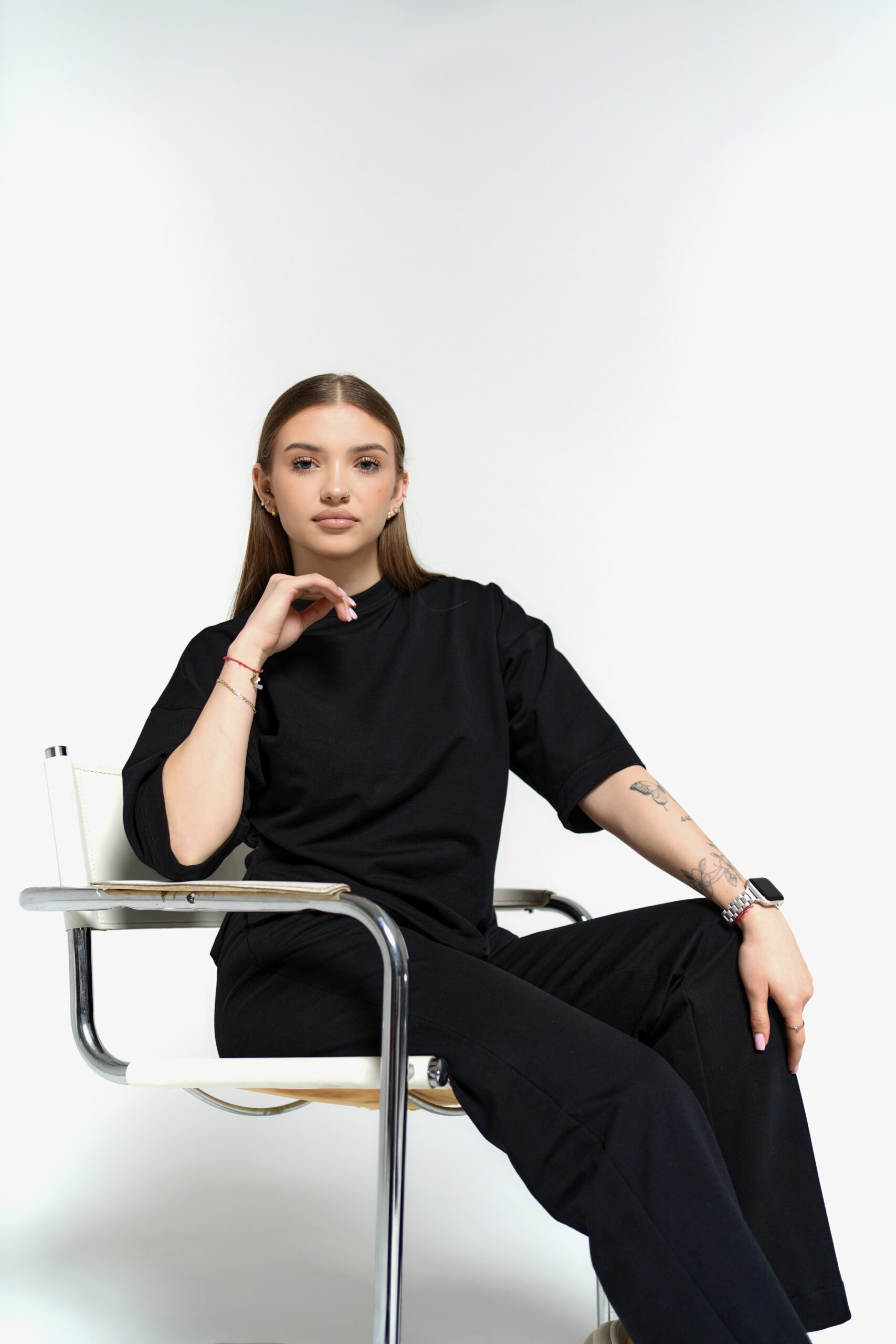Lekki komplet sportowy, który łączy wygodę z eleganckim stylem. Spodnie z praktycznymi kieszeniami i koszulka wykończona ściągaczem tworzą spójną, nowoczesną całość – idealną na co dzień i do pracy w gabinecie. Wykonany w 100% z bawełny